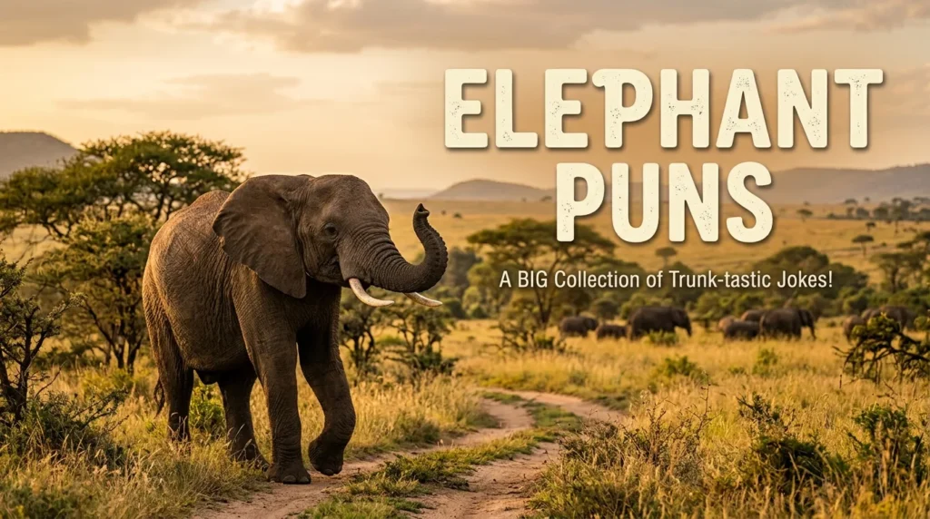 Elephant puns have a gentle magic that can lift heavy hearts, spark laughter, and remind us that joy can feel big, warm, and unforgettable. When life feels loud or quiet in the wrong ways, these playful jokes bring comfort through humor, kindness, and a touch of whimsy. This long and loving collection celebrates wordplay, smiles, and emotional ease, all wrapped in the charm of the world largest gentle giants. Let these lines help you breathe, laugh, and remember that happiness never forgets you.